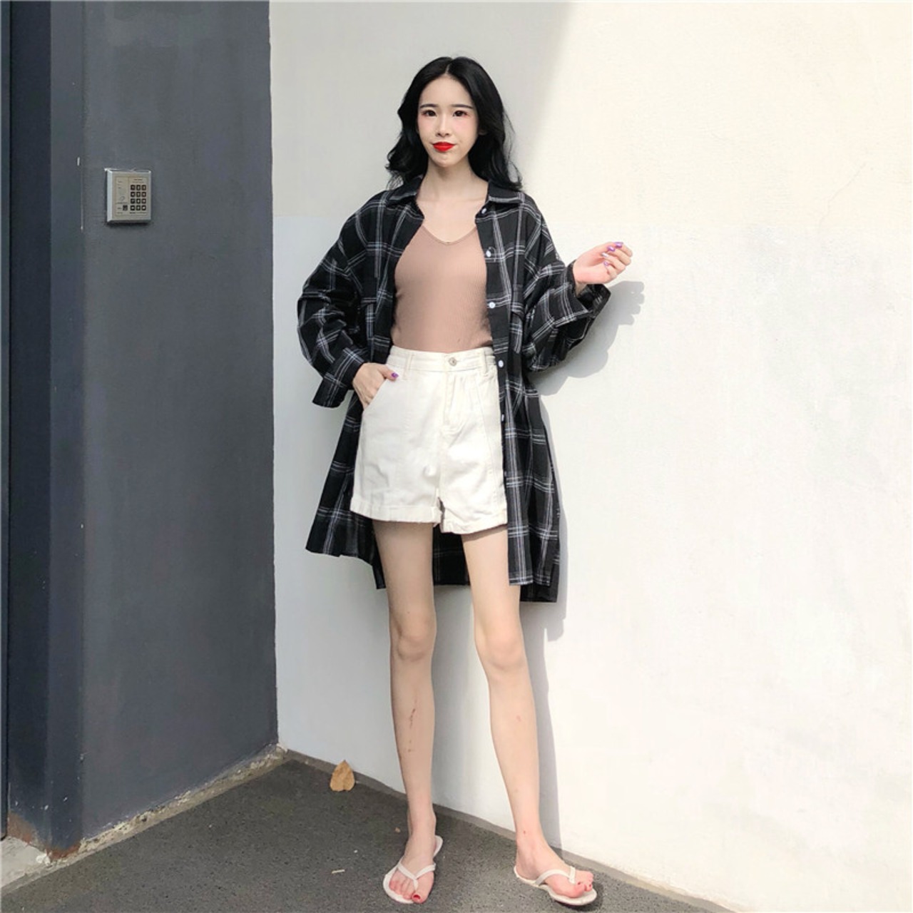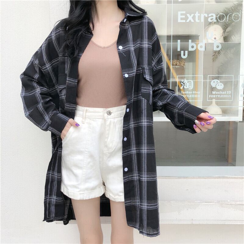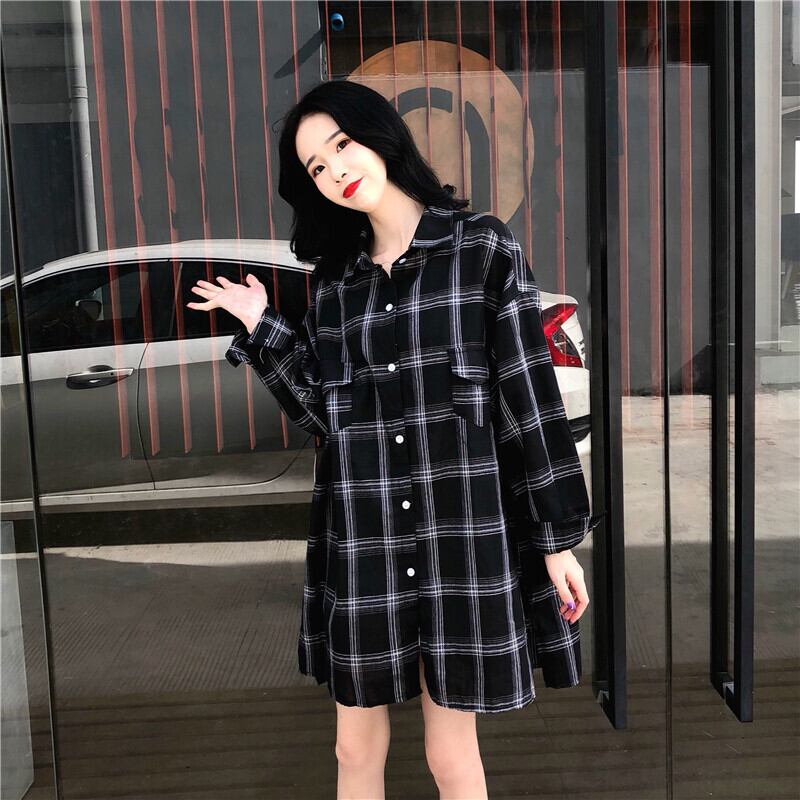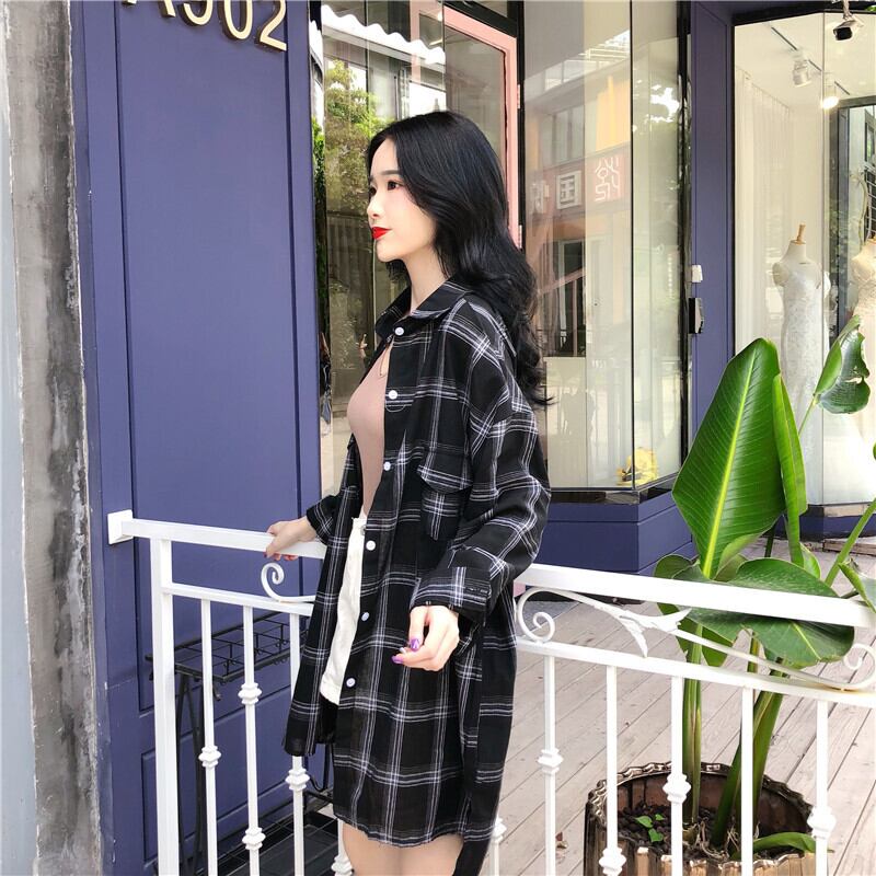 チェック柄 ロングシャツ ジャケット ルーズ 2カラー a186