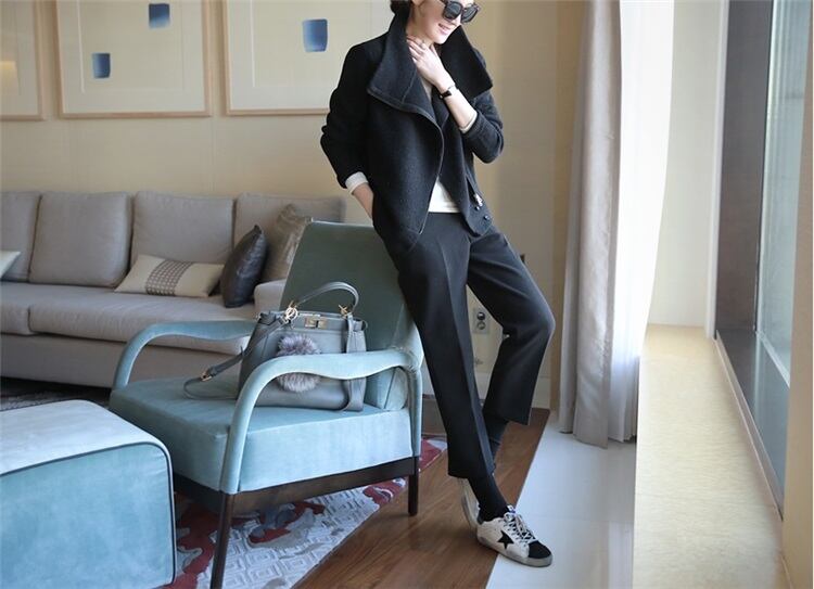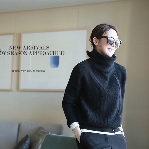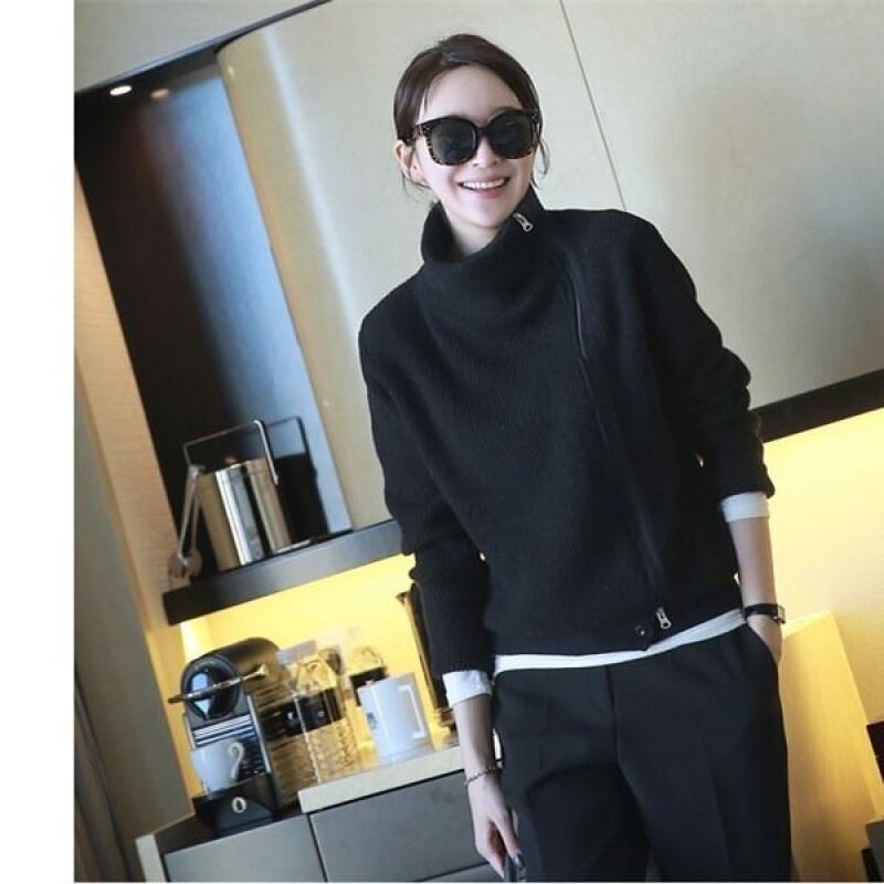 カシミヤ混 ハイネックスタンド ZIPデザイン ニットカーディガン セーター ジャケット a193