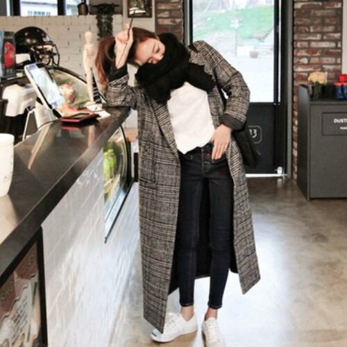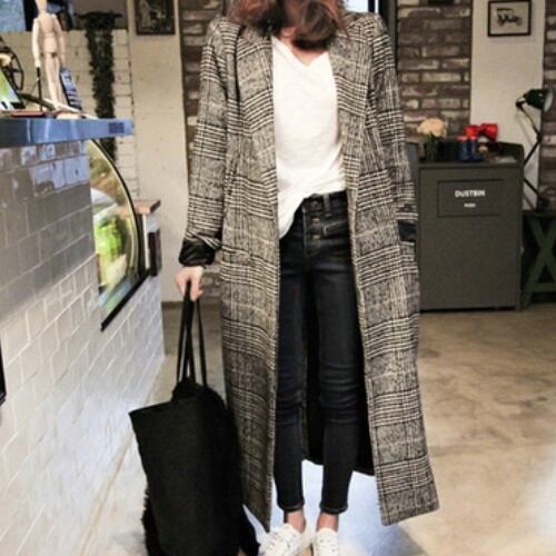 チェック柄 ロングコート長袖 オーバーコート 冬 アウター レディース モノトーン A2069