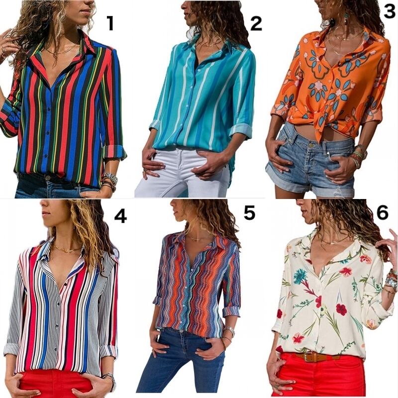 プリントシャツ オータムファッションス トライプボタン 長袖シャツ a239