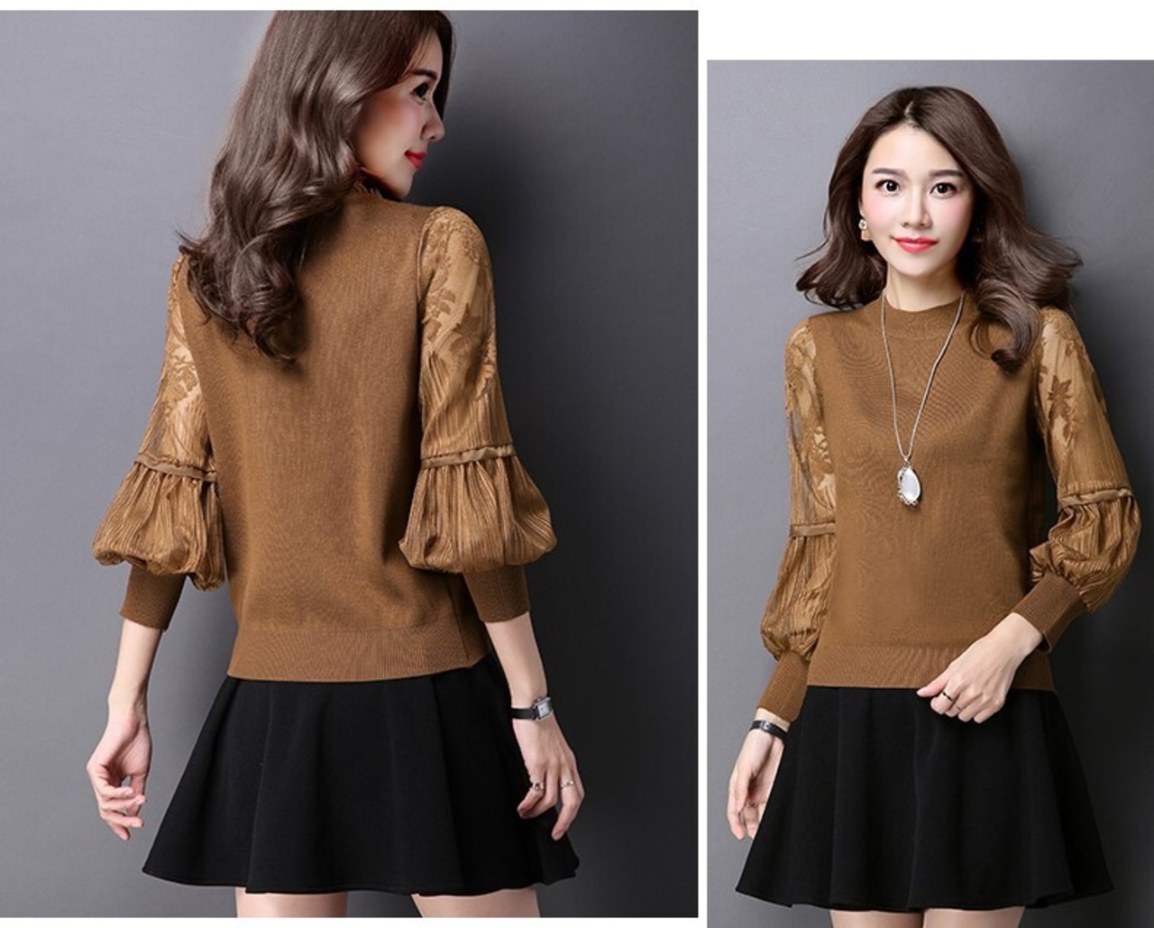 長袖シースルートップス 大きいサイズ ランタンスリーブ カットソー シャツ ハイネック メッシュ ブラウス レディース A359
