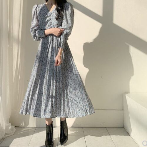 パフスリーブ フェミニンプリーツワンピース 3色展開 A2135