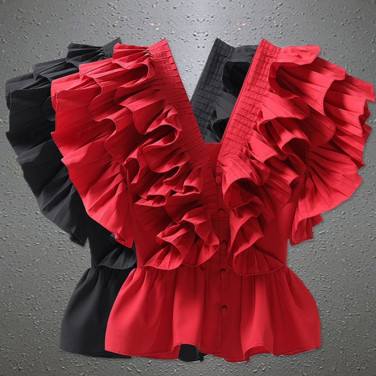 華やかなフリルデザインが、女性らしさとエレガンスを引き立て、どんなシーンでも活躍すること間違いなし。