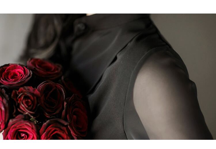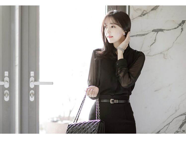露出が少なく上品なブラウスなので、お呼ばれビジネスシーンに最適