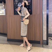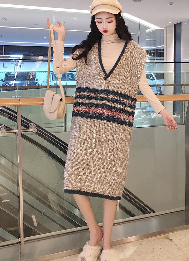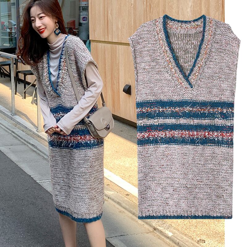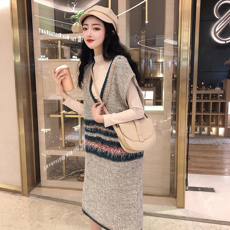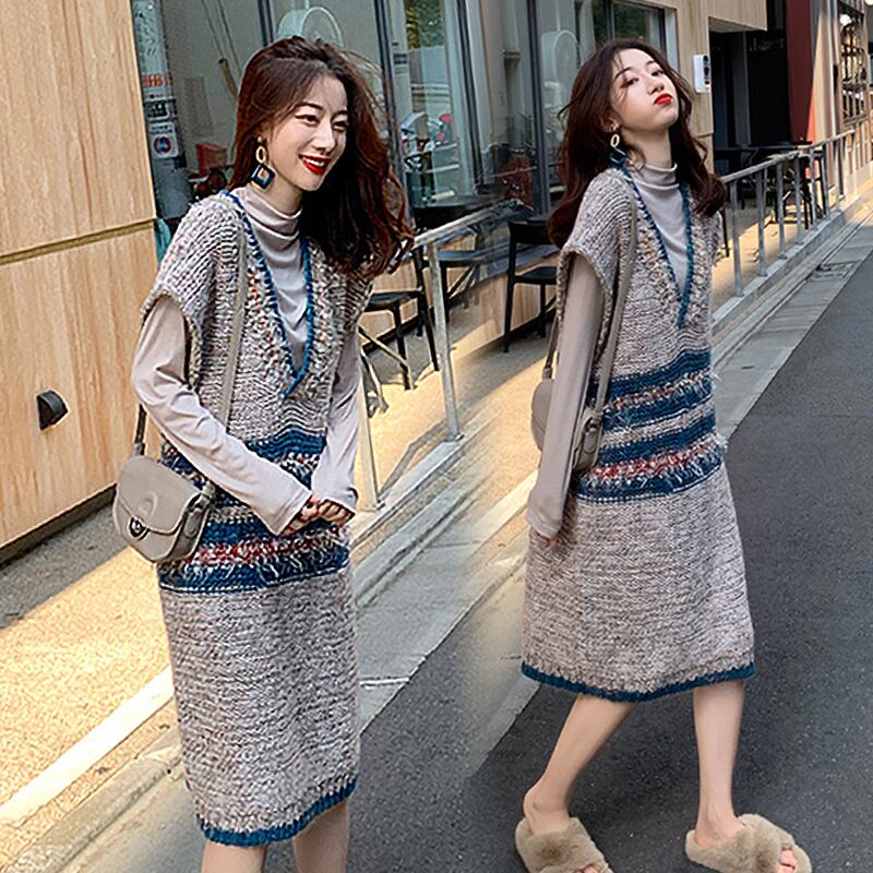 【セットアップ】Vネックニットベスト+長袖トップス ハイネック ツーピース a283