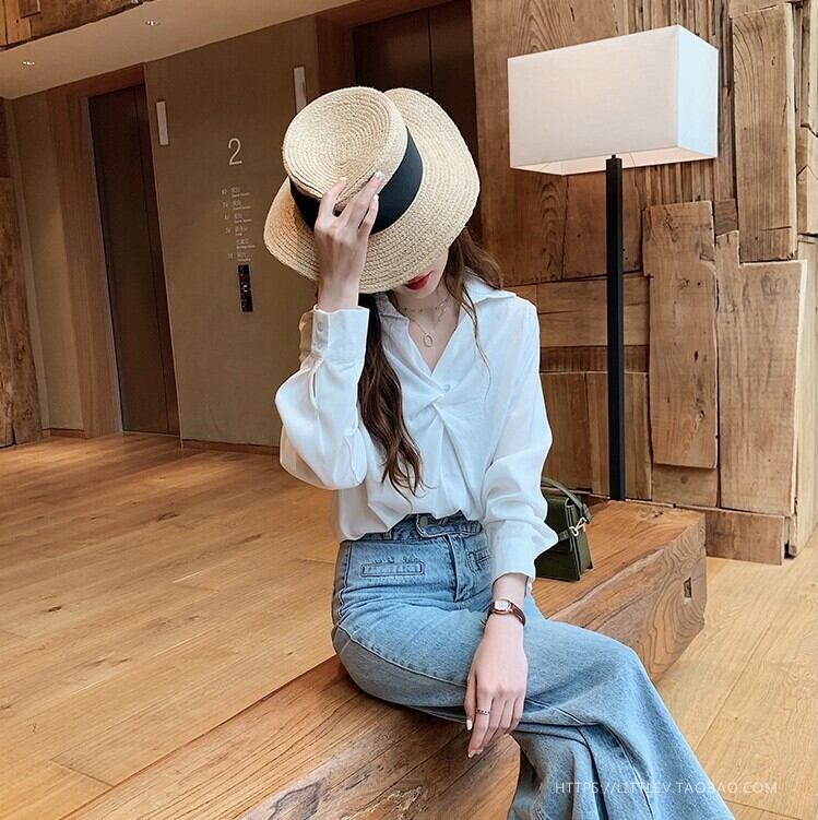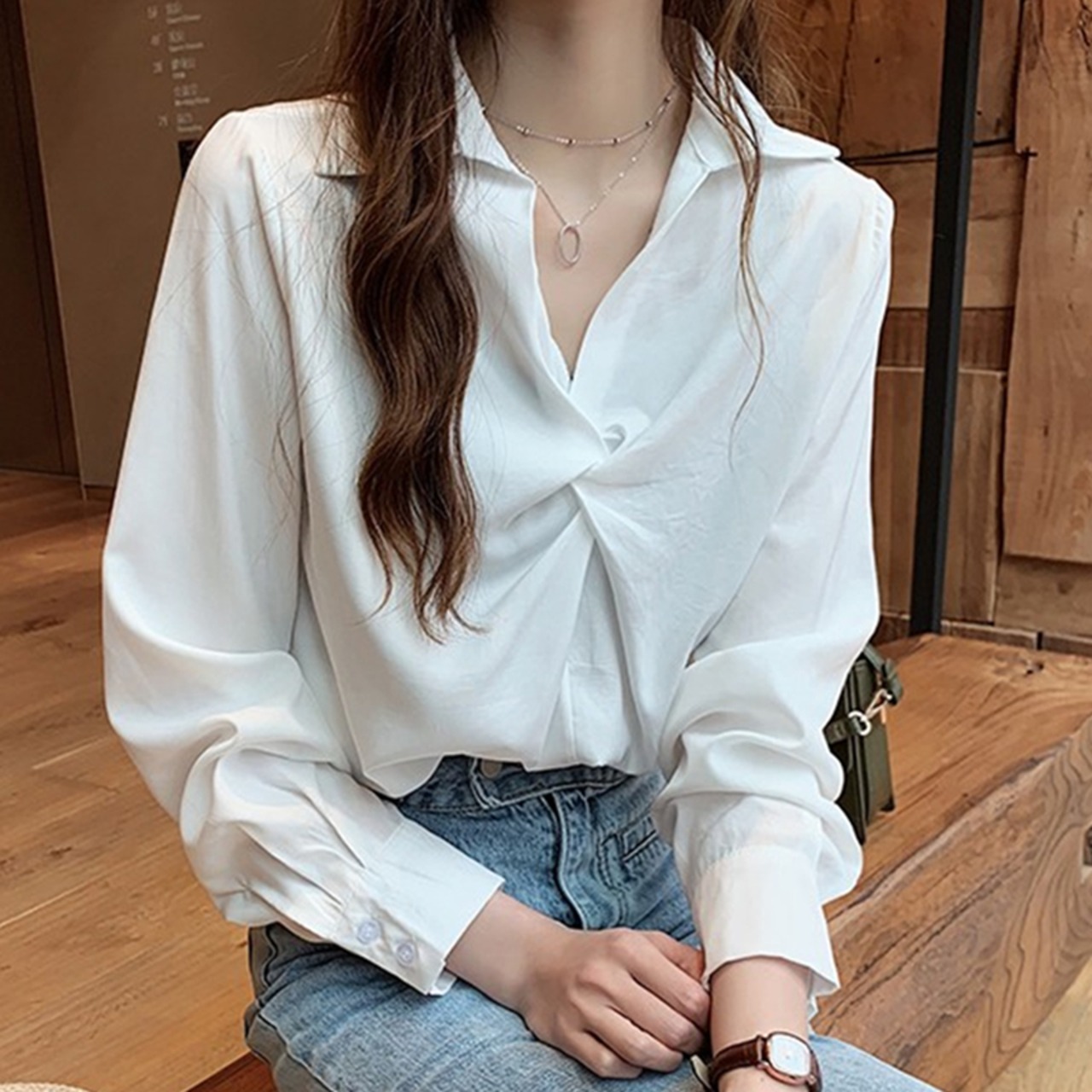 Vネック ブラウス 前くしゅっとデザイン ゆったり シャツ トップス シフォンブラウス 3カラー a284