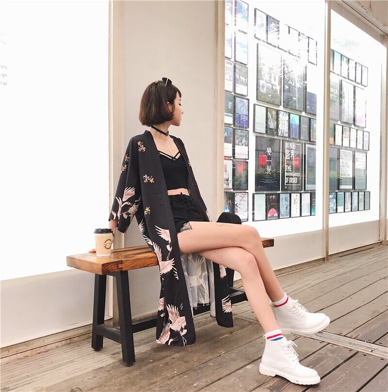 着物風 ロング丈 カーディガン はおり 和柄 レディース トップス ストリート 薄手ジャケット a292
