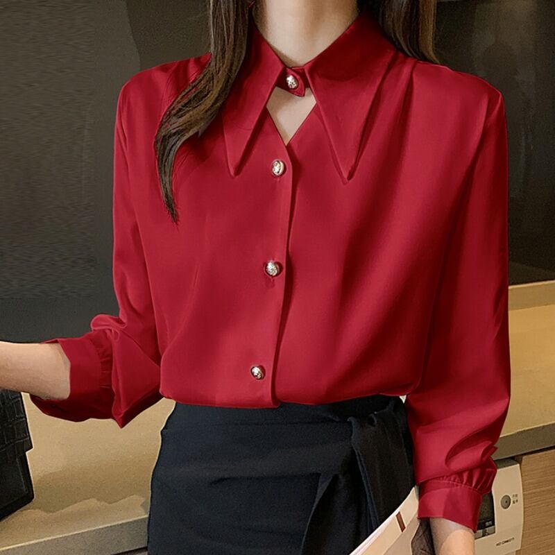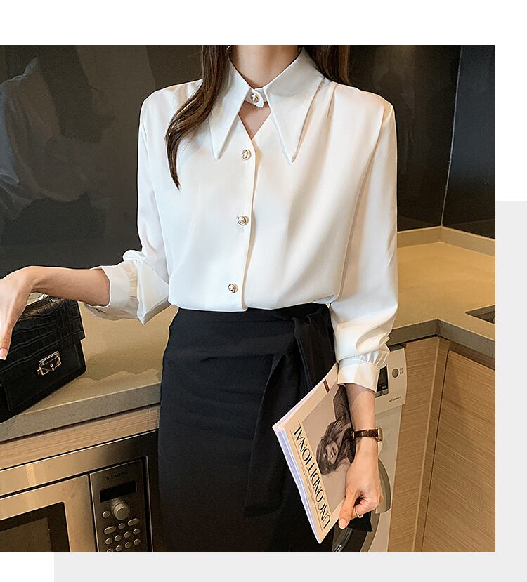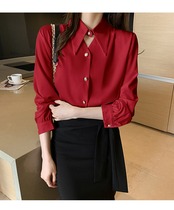 ブラウス ターンダウン シングルブレスト シャツ 長袖 シフォンブラウス Vネック. 5カラー. a298