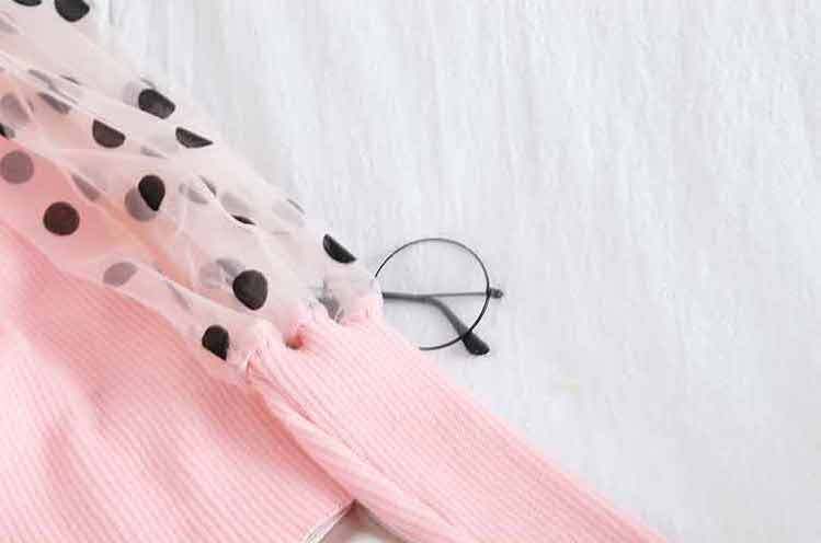 ドット柄 シースルースリーブ 長袖 トップス ラウンドネック プルオーバーセーター 韓国 a297
