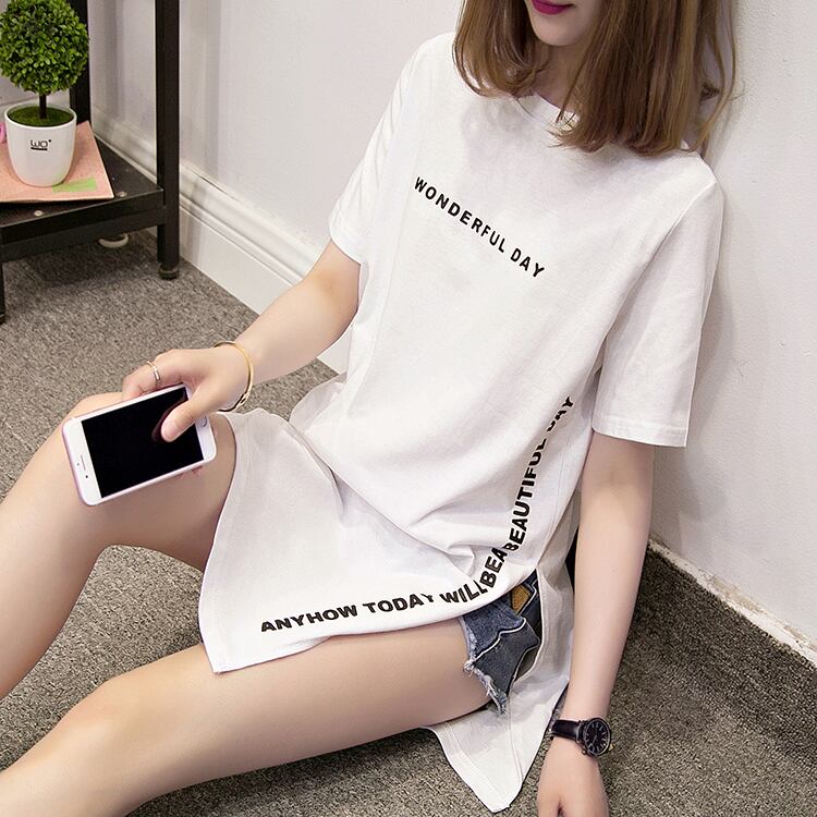 Tシャツ 原宿 かわいい 半袖 トップス シンプル セクシー シャツ 春 夏 秋 冬 人気 定番 流行 スリット ロング A347