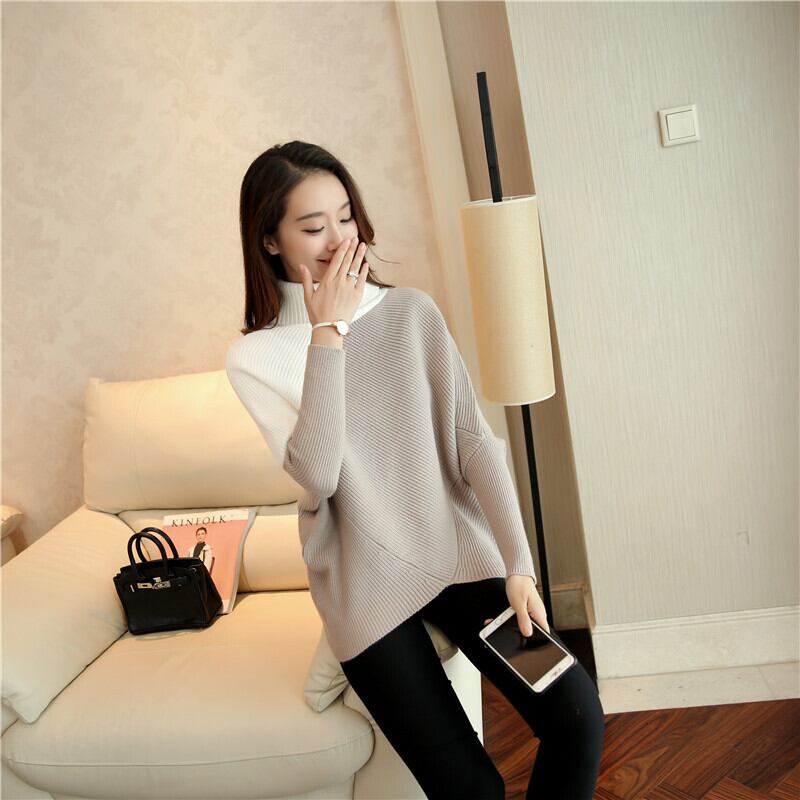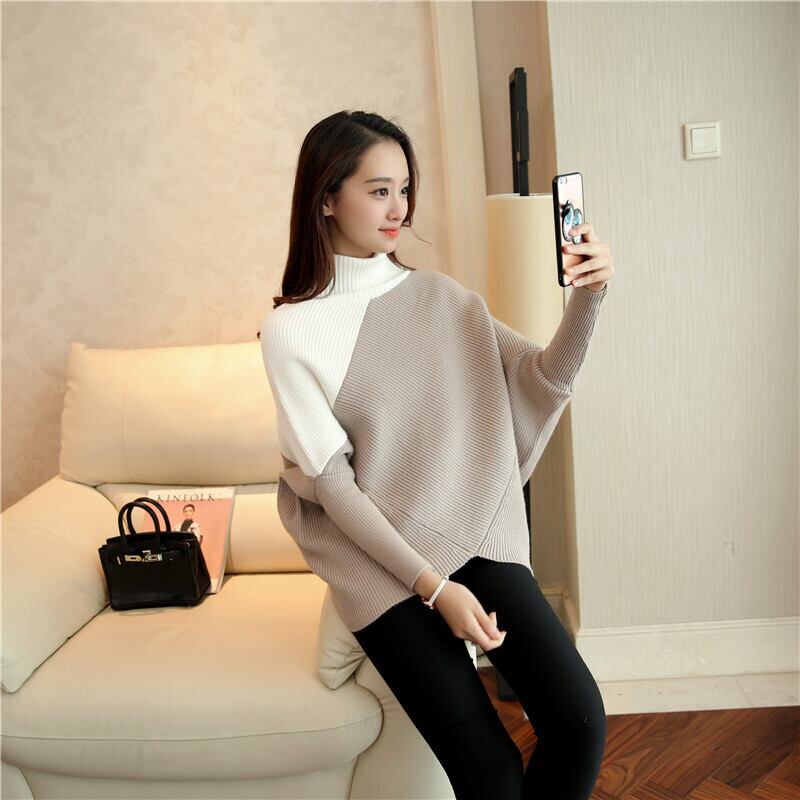 トップス ニットボリューム バイカラーハイネック ドルマンスリーブ a324