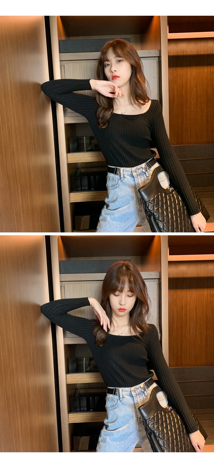 ニットセーター カシュクールニットトップス セクシー Uネック リブ編み ストレッチ A402