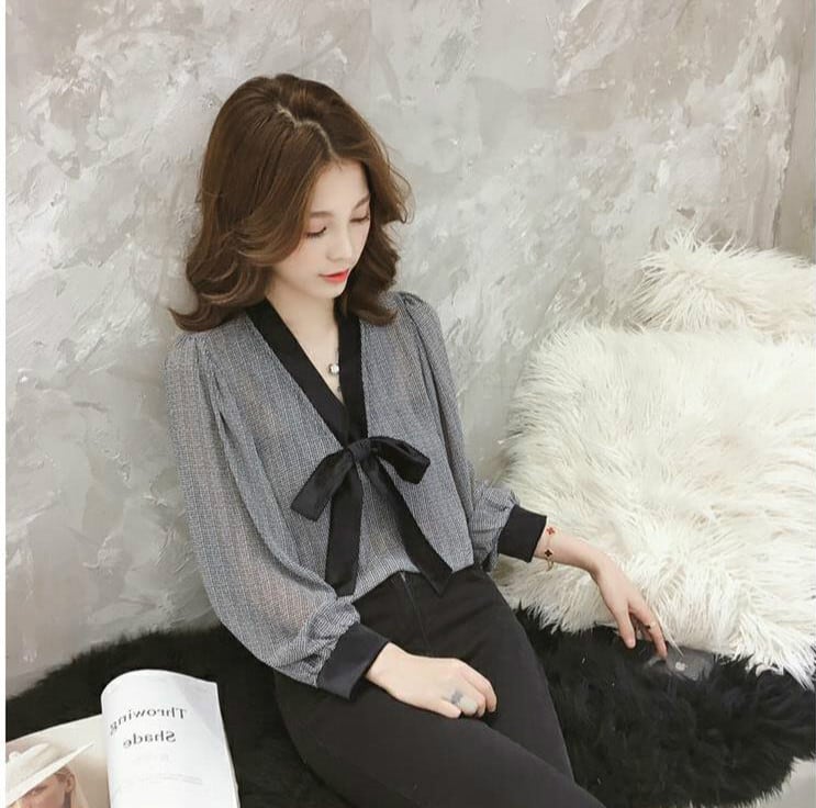 レディース トップス ブラウス Vネック おしゃれ リボン 通勤 OL 大きいサイズA387
