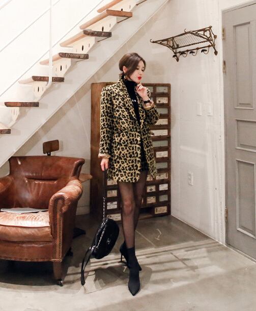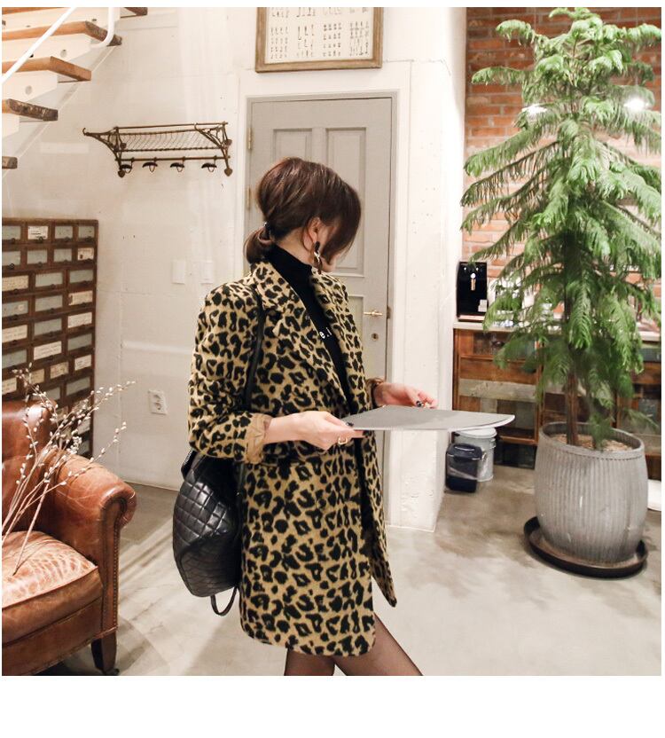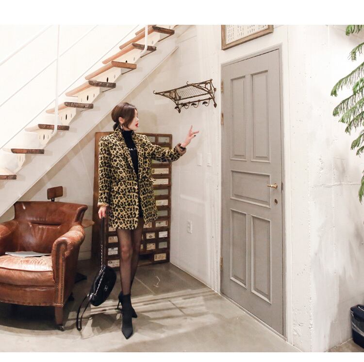 【セットアップ】レオパード柄 ジャケット+スリムスカート ハイウエスト ツーピース b486
