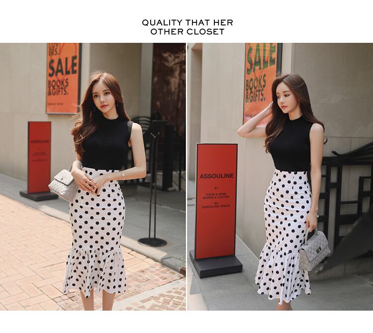 マーメイドスカート ハイウエスト スカート 水玉 ドット柄 綺麗め b341
