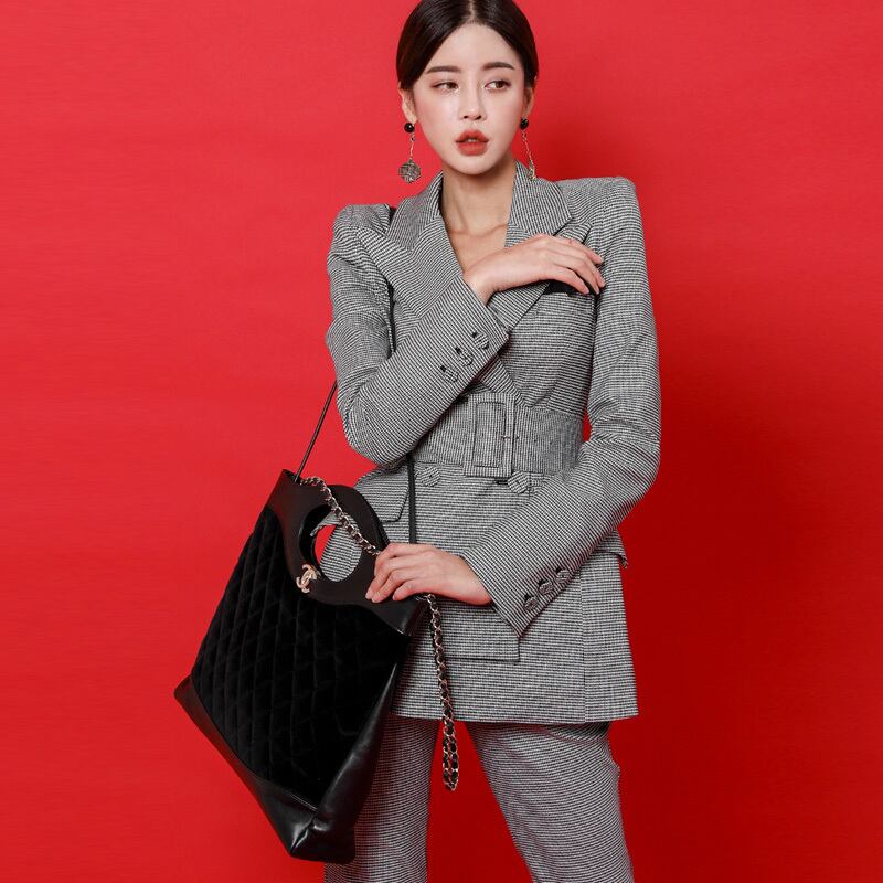 【セットアップ】千鳥格子✴︎スーツ アシメントリー 2ピース b348