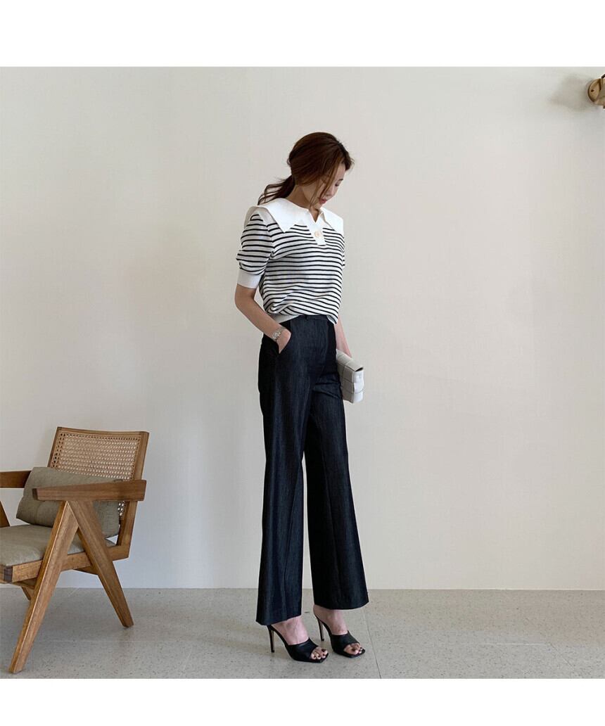 ストライプ半袖セーターTシャツ 2カラー b101
