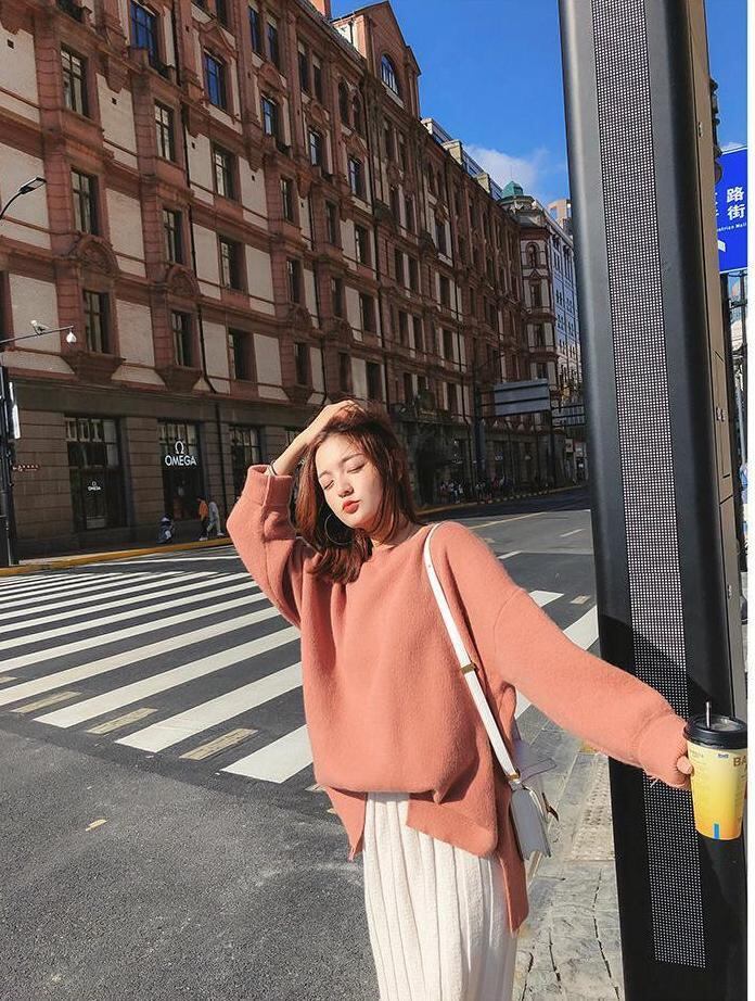 セーター ミドル丈 ニット 韓国スタイル ルーズ プルオーバー 6カラー a416