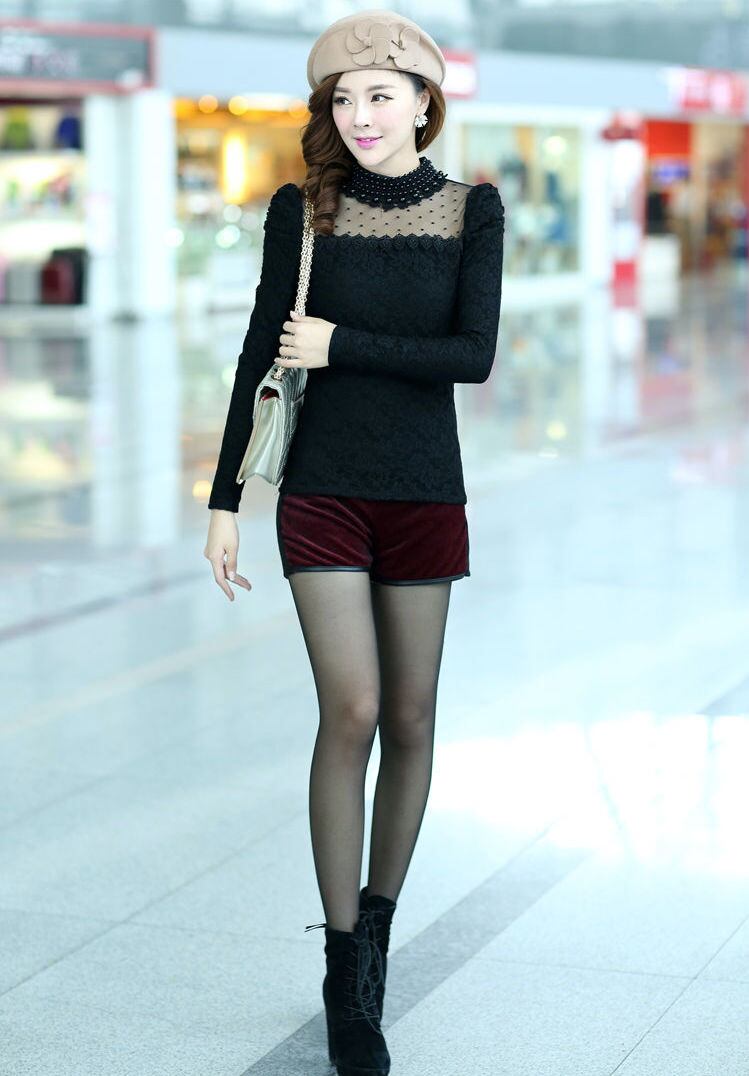 パールネック ブラウス 長袖 レース 暖かい シースルー ラウンドネック 3カラー a431