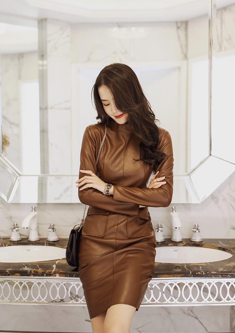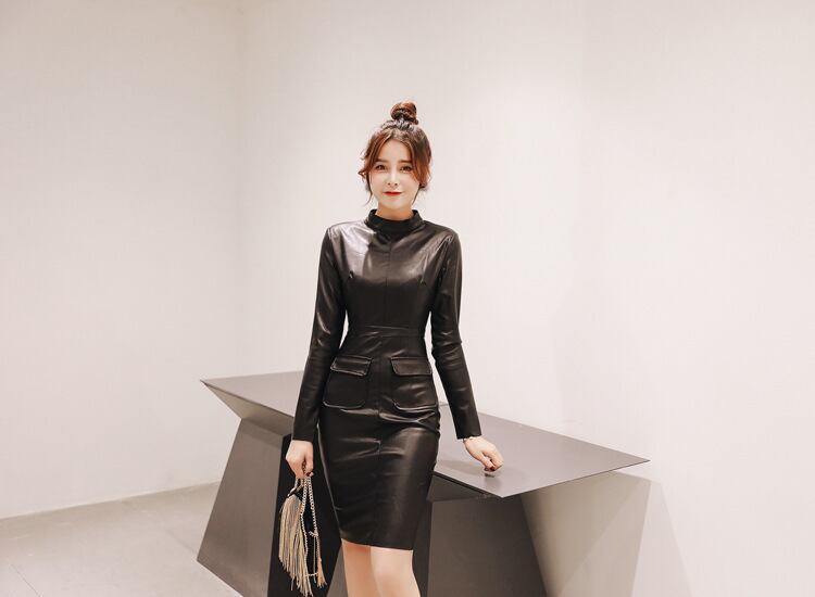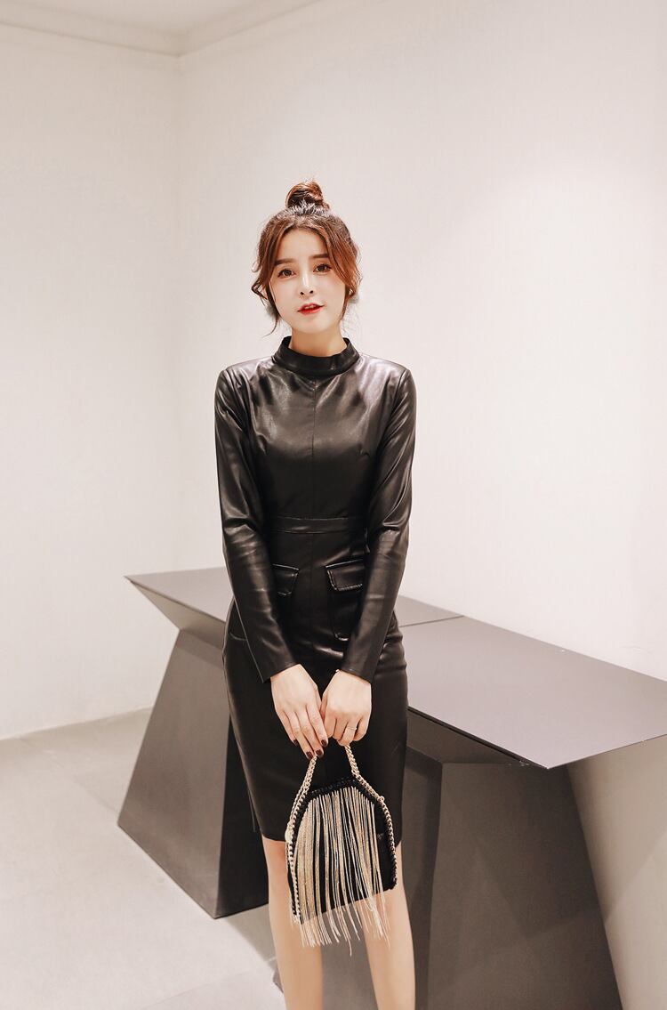 PUレザー パッチワーク 大人 シックデザイン ワンピース A996