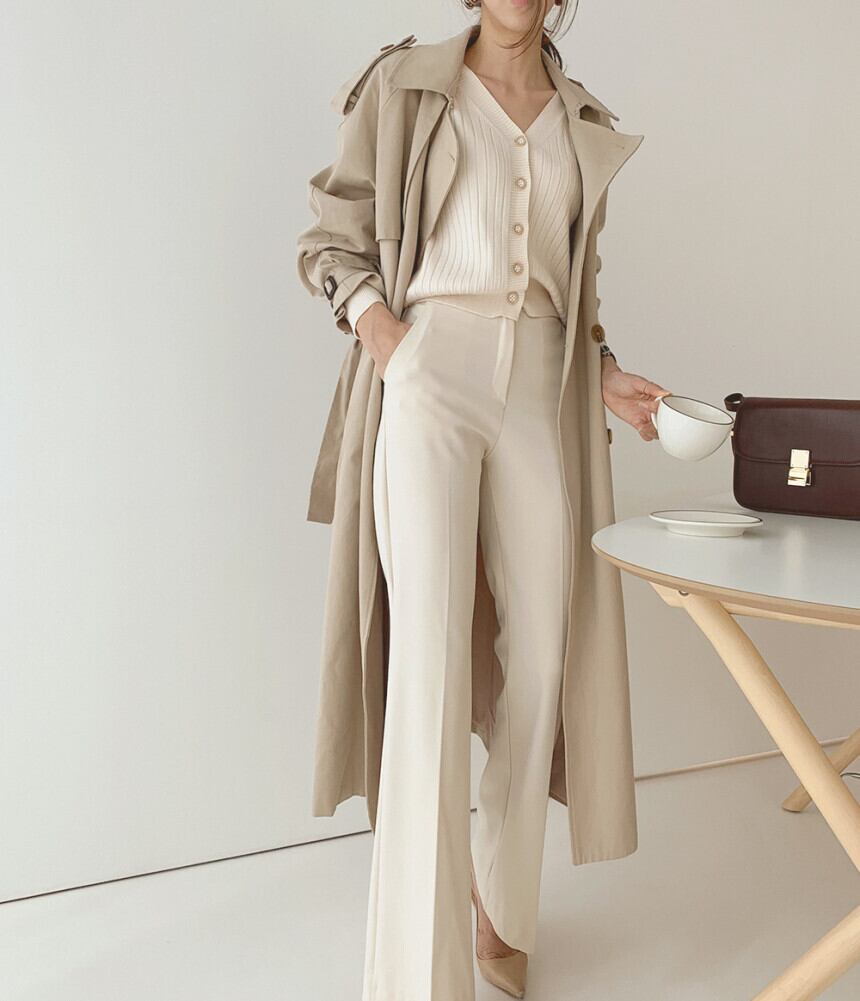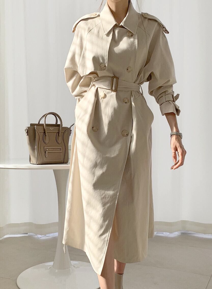 トレンチコート ウエストベルト ミドル丈 韓国 レトロ 長袖ジャケット カジュアル a504