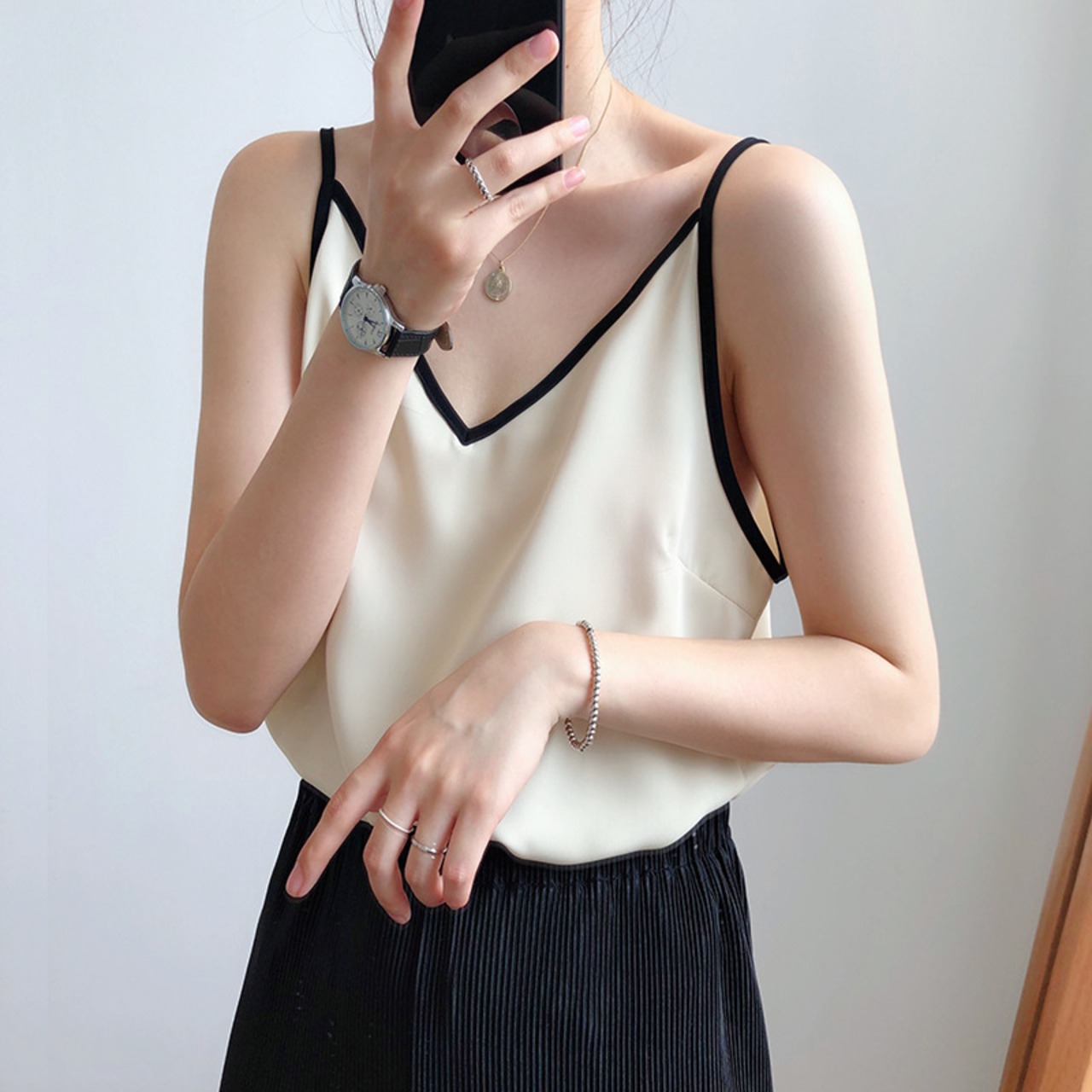 サテン シルク タンクトップ セクシー ストラップ 夏 キャミソール トップス キャミ A599