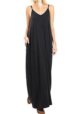 Vネック キャミソールワンピース パーティー ゆったり 体型カバー A598