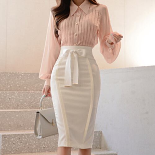 ウエストが細く、足が長く見える効果のあるデザインです。