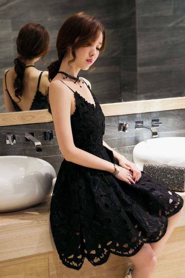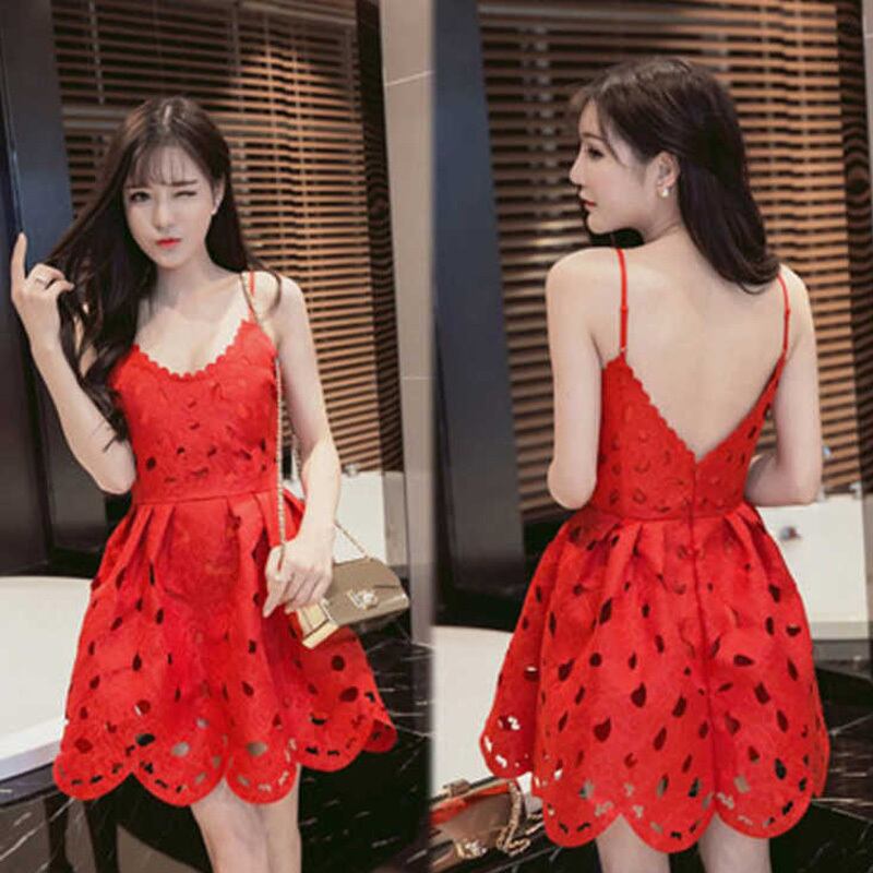 セクシー ミニ ワンピース ースリーブ 刺繍 レース キャミソール フレア 結婚式 フォーマル キャバ嬢A571