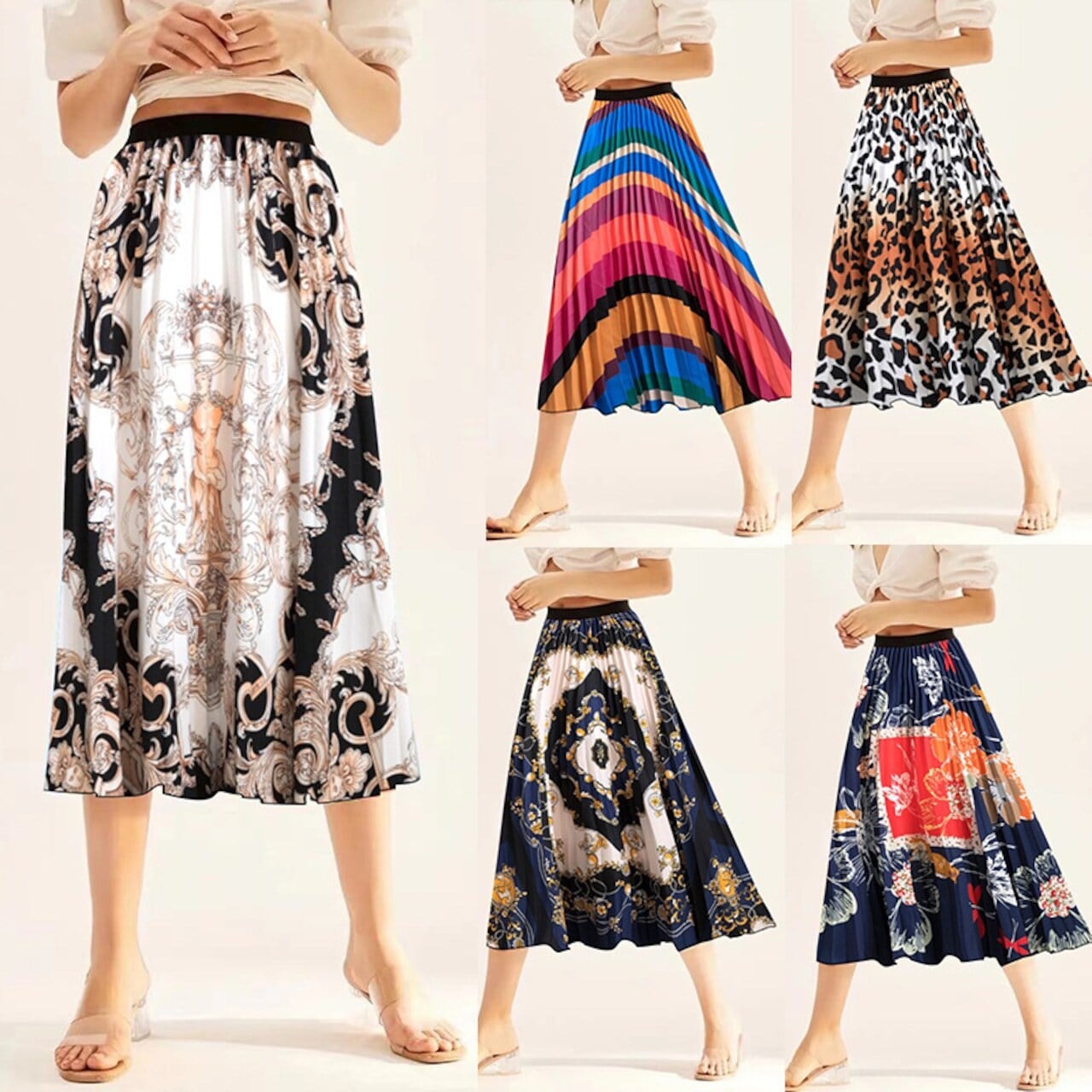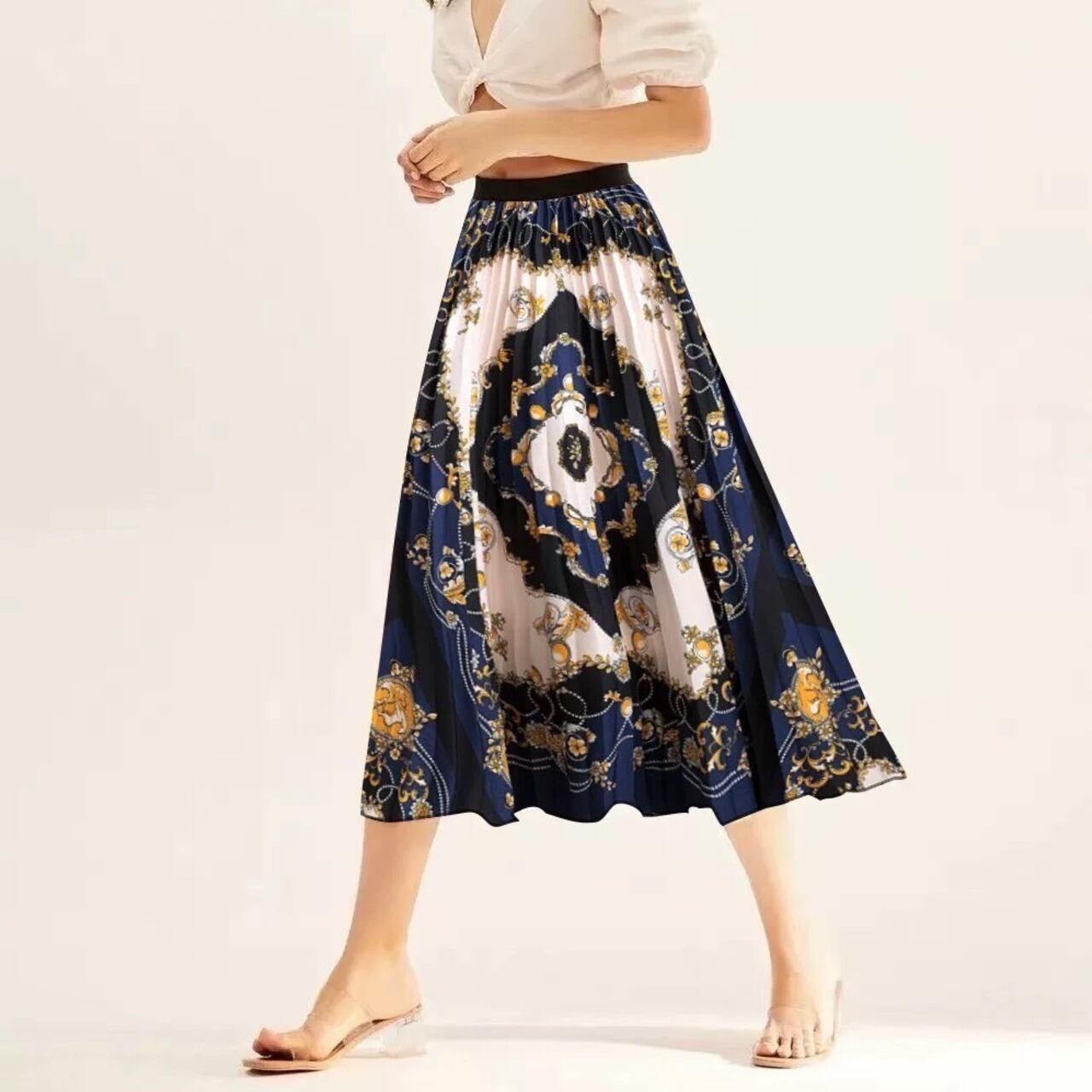 スカーフ柄 プリーツ ミディスカート ロングスカート♪ A1077