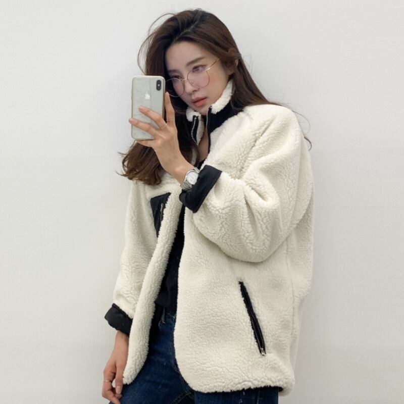 ラムウール ベルベット ジャケット もこもこ アウター コート リバーシブル 2カラー a792