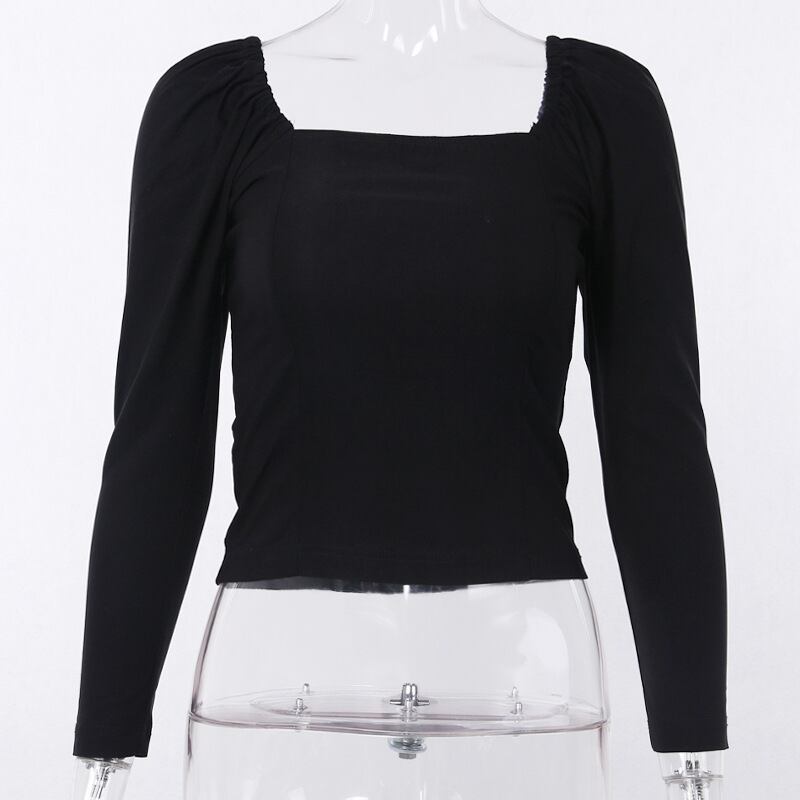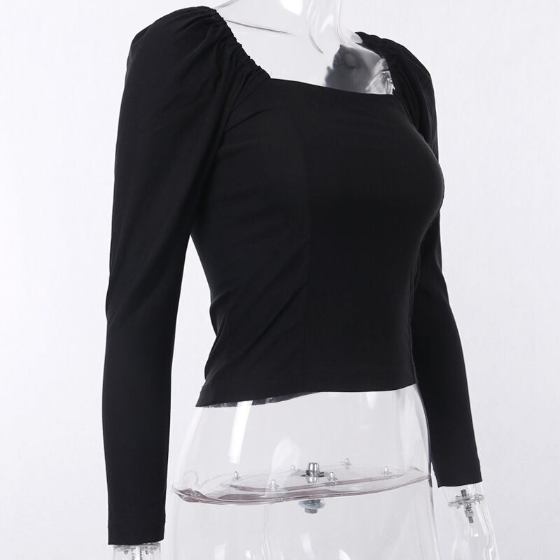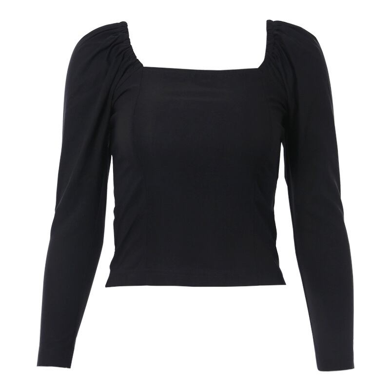 スクエアネック プリーツ 長袖ブラウス トップス パフスリーブ a795