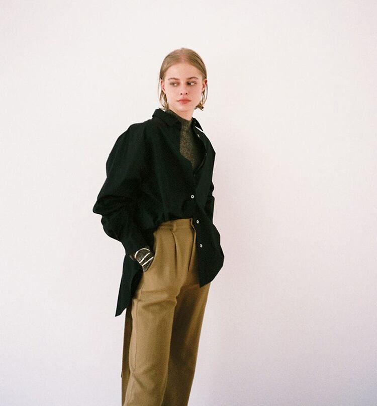 オープンバックのオシャレな長袖ブラウス