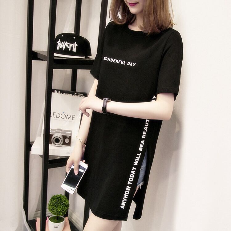 Tシャツ 半袖 トップス シンプル セクシー シャツ スリット ロング A664