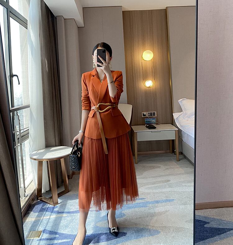 【セットアップ】ジャケット+フレアスカート ベルトファッション ウエスタンスーツ ツーピース a158