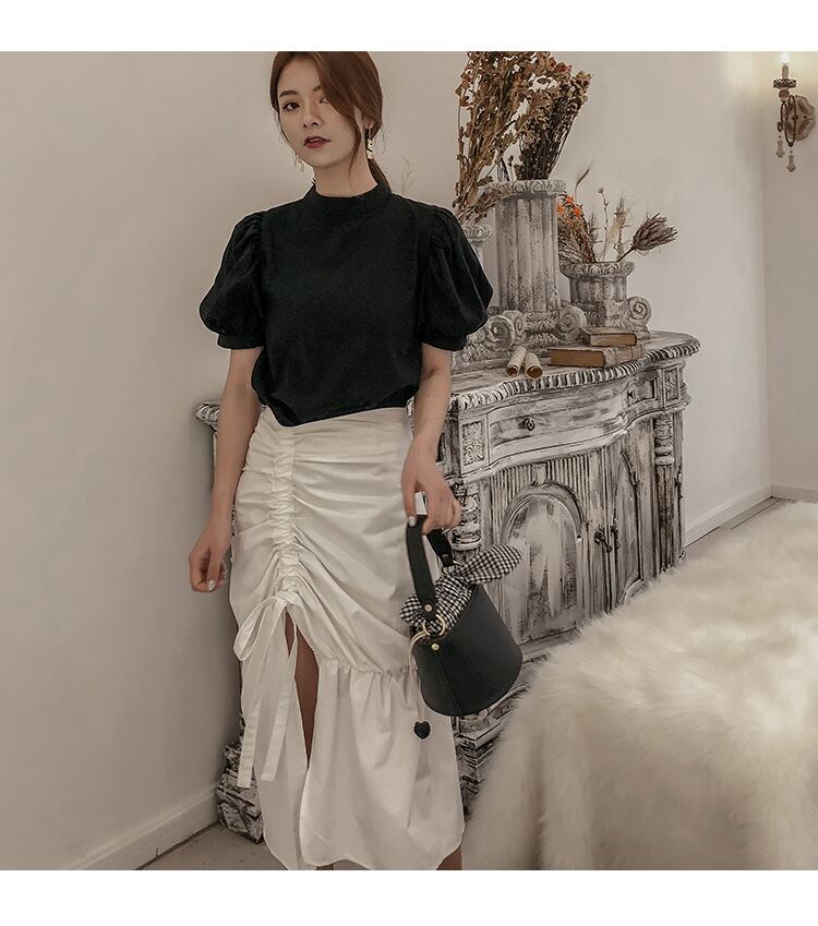 スプリットスカート ハイウエスト ギャザースカート Aラインスカート ドローストリング A2279
