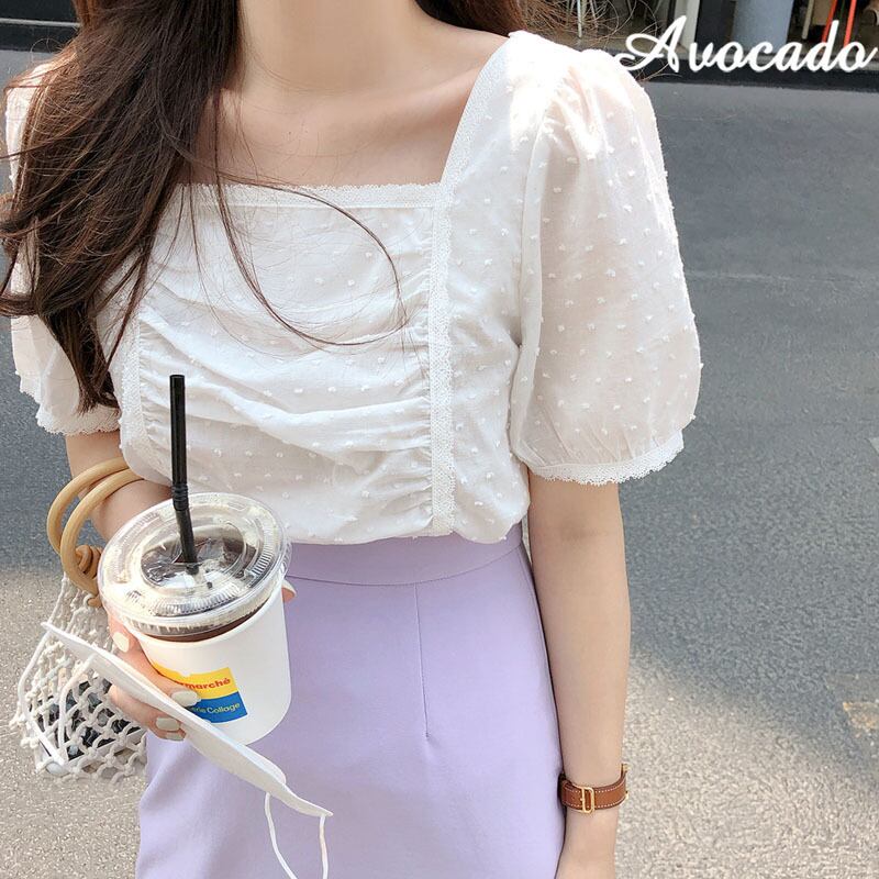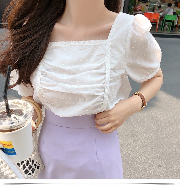 【セットアップ】ハイウエストスカート+バブルスリーブブラウス ツーピース A681