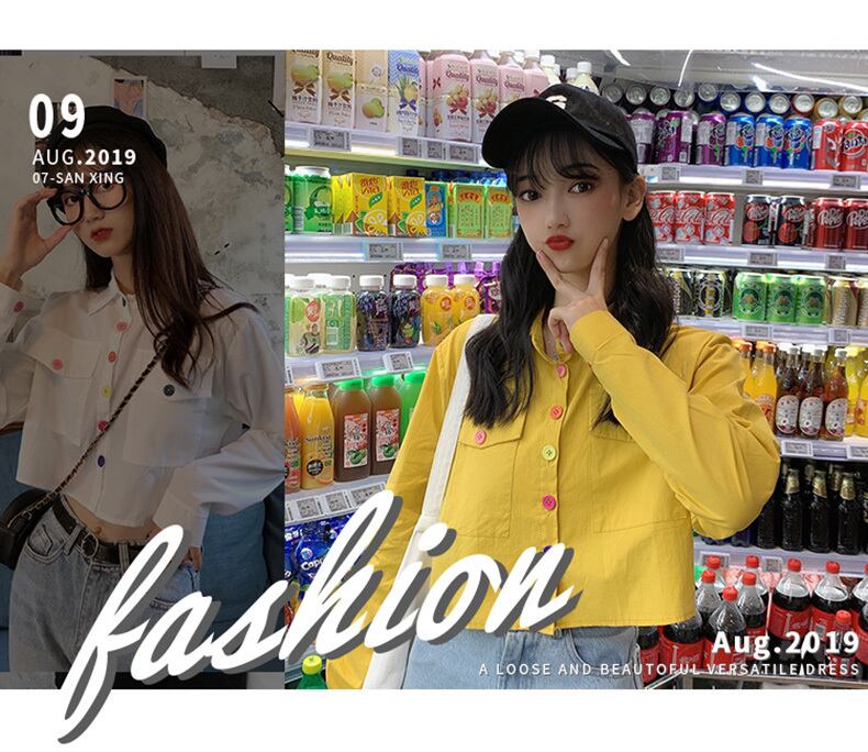 ジャケット ショート丈 シャツ 長袖 ポケット カラフルボタン レトロ アウター トップスA698
