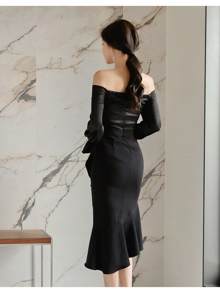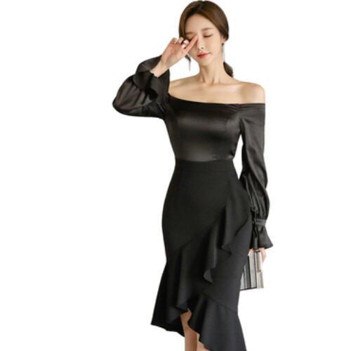 オフショルダー ワンピース シンプル ハイウエスト ひざ丈 ☆A1110