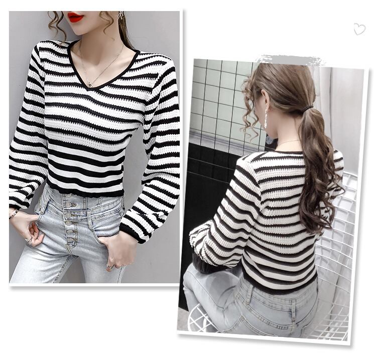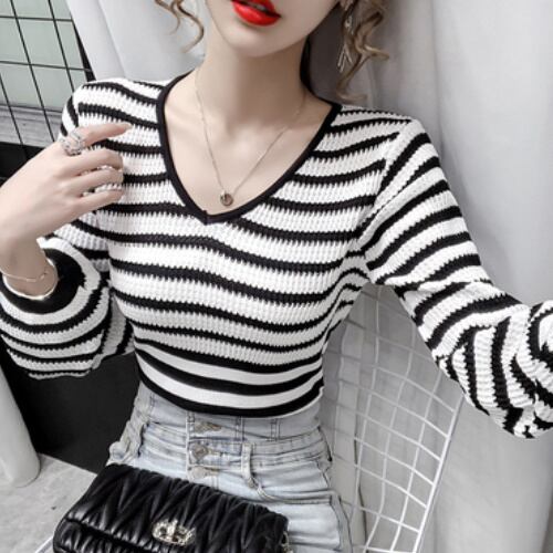 長袖 ボーダートップス トップス 春夏 ショート丈 韓国☆A1199