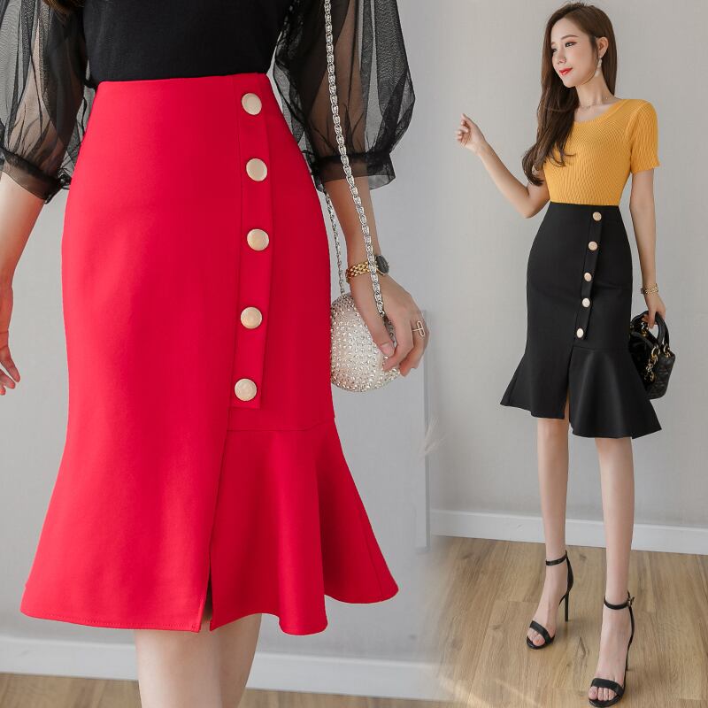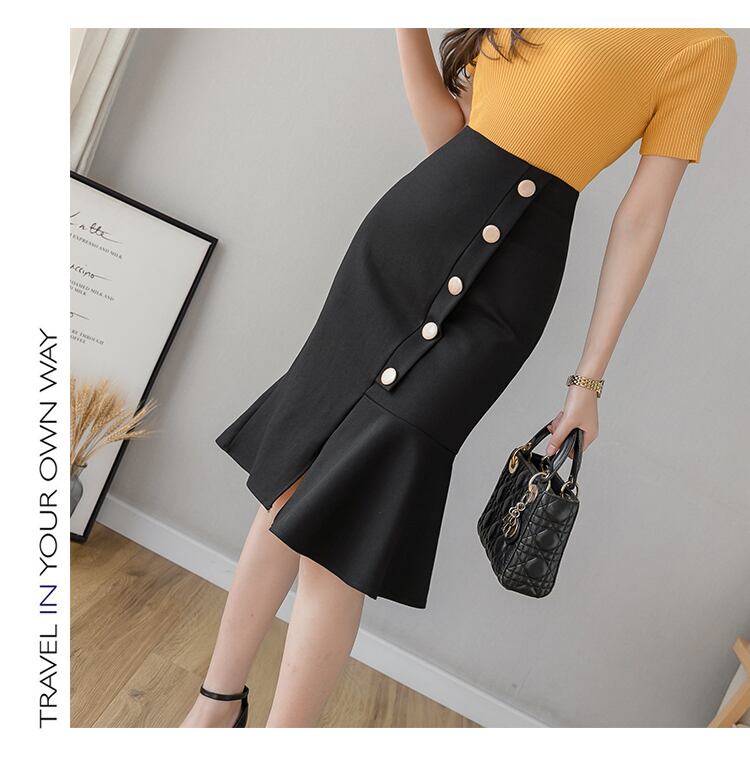 フィッシュテール ハイウエストスカート マーメイド スプリット ミドル丈 不規則 ☆A1194
