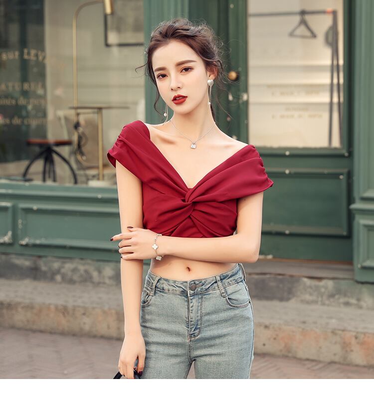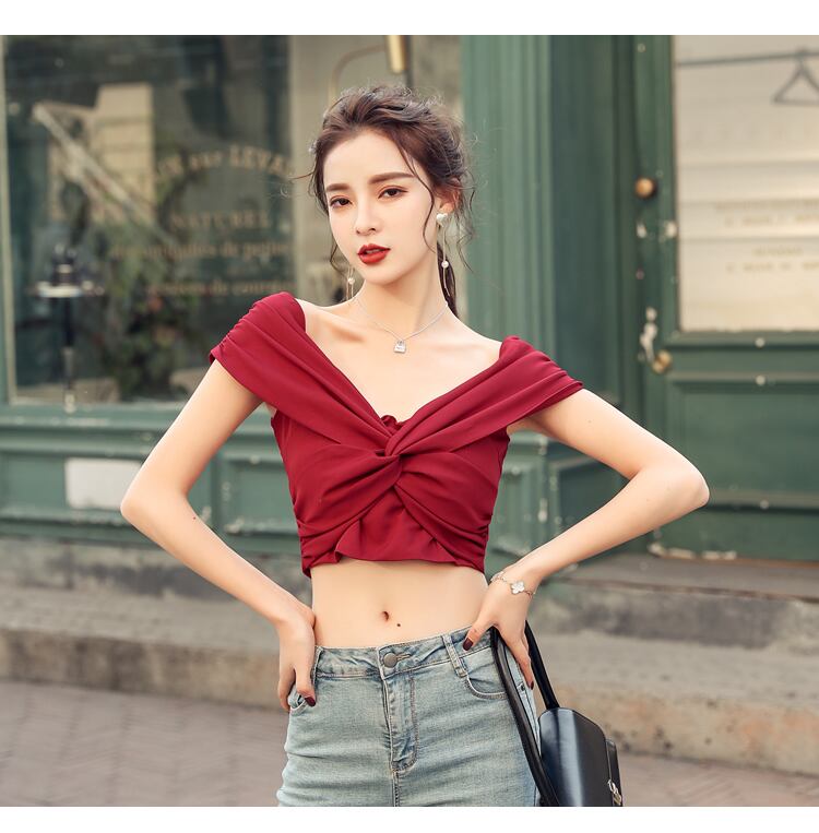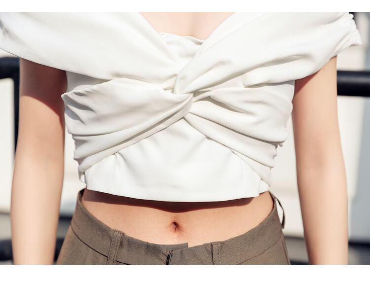 デコルテラインをキレイに見せてくれるショート丈トップス