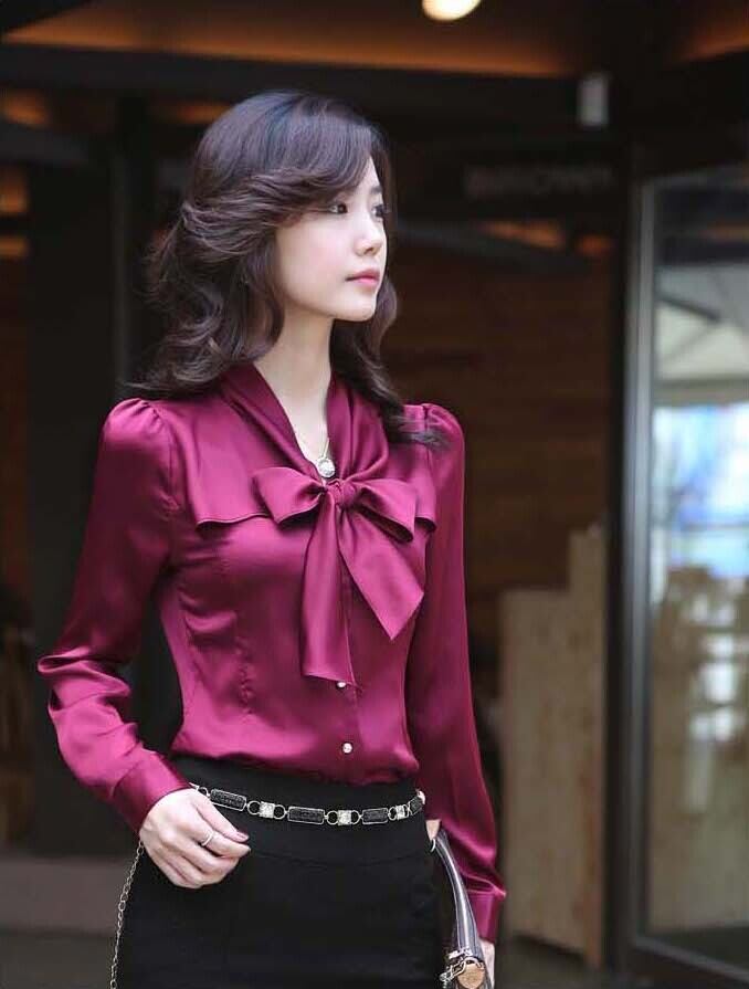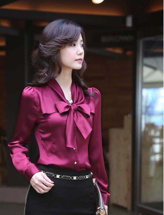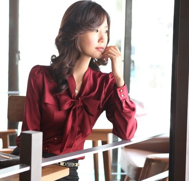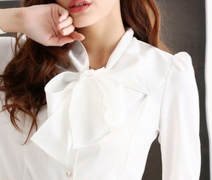 ブラウス リボンネクタイ 長袖 サテン ボウタイ シフォンシャツ ロングスリーブ A711