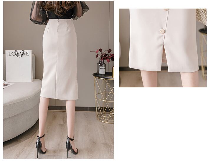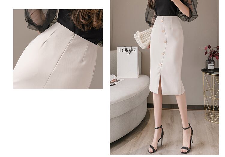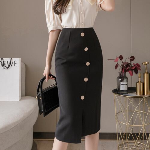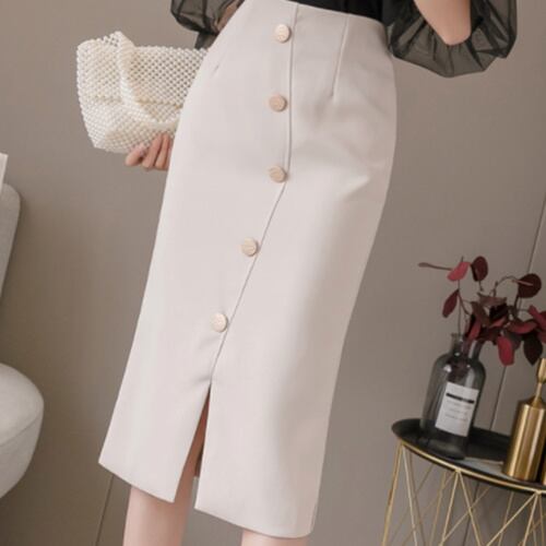 ハイウエスト ミドル丈 バッグスカート スリット☆A1198