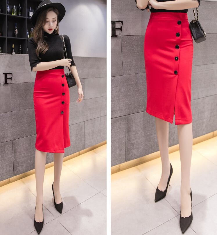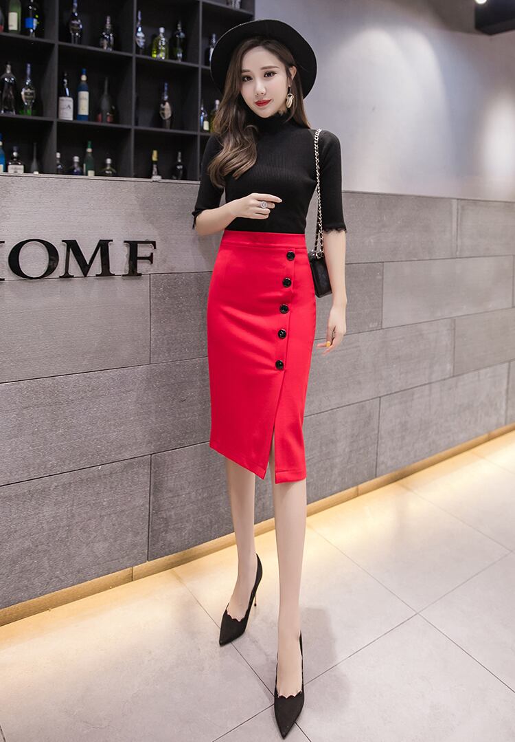 フィッシュテール Aラインスカート スリット ハイウエスト ひざ丈 タイト☆A1154