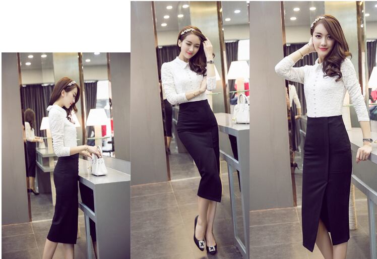 タイトロングスカート ミドル丈 スリットスカート☆A1204