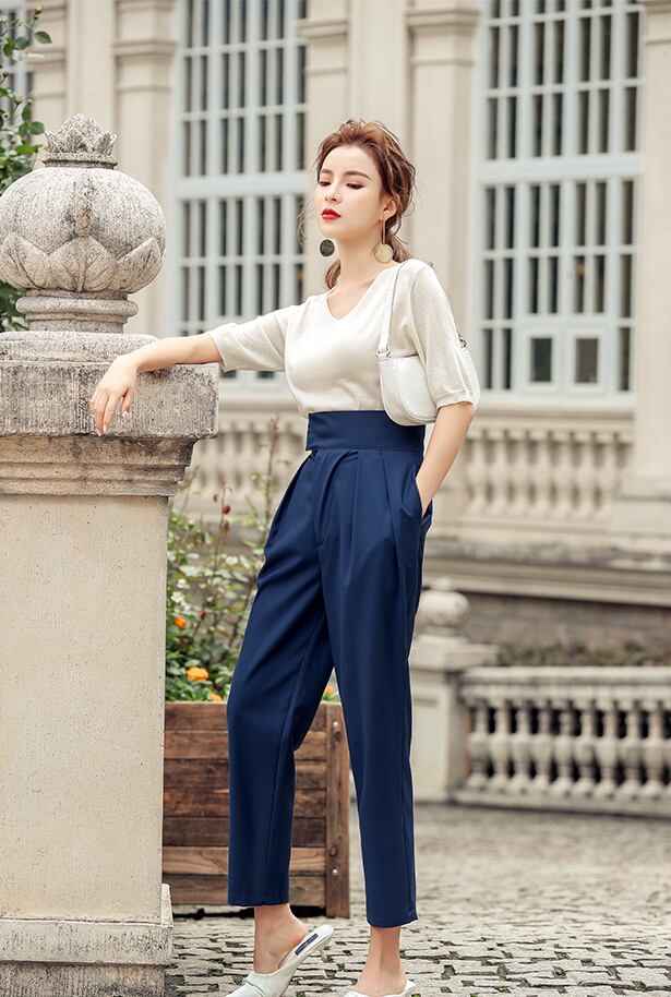 プリーツキャロット ハイウエスト 9分丈 パンツ☆A1206