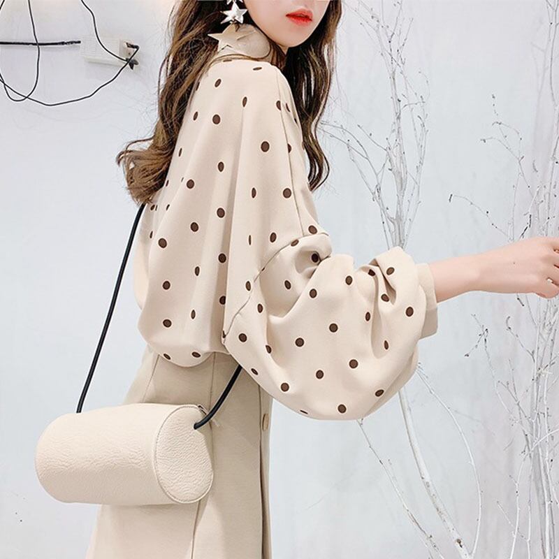 ポルカドット柄 長袖シャツ 韓国 ルーズ ワイルドガーリー ブラウス トップス 2カラー a858