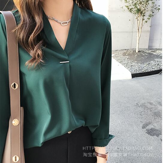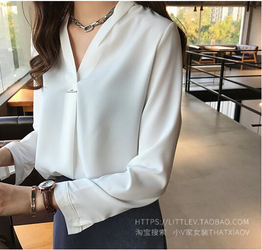 Vネック シフォンブラウス 長袖シャツ 韓国 ボトミングデザイン 4カラー a860