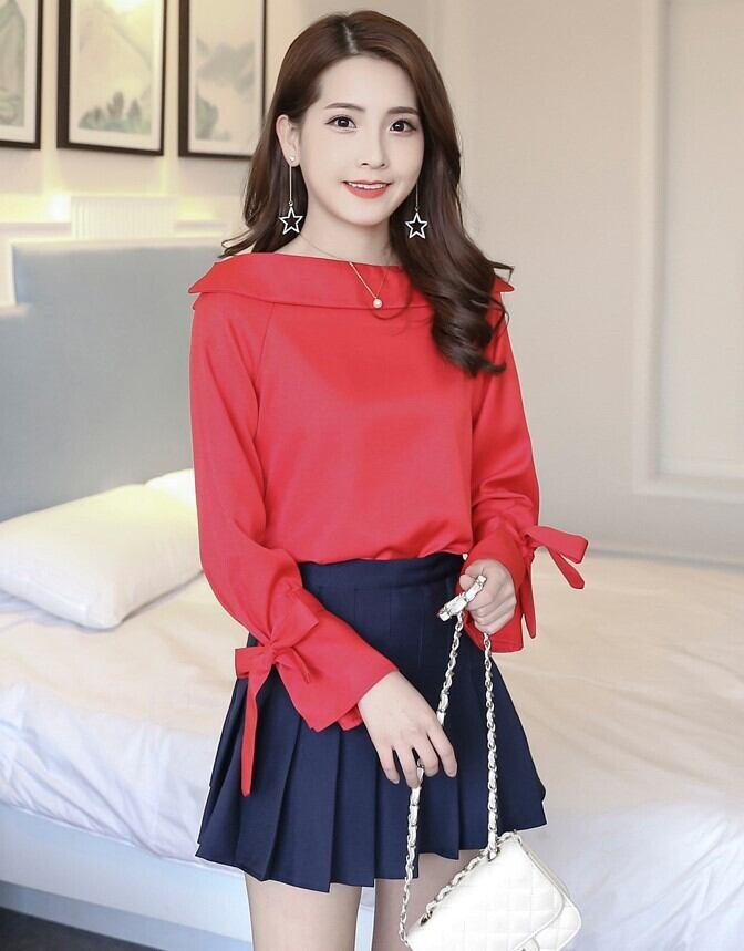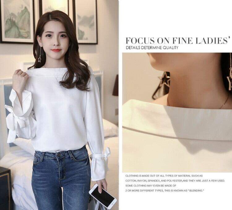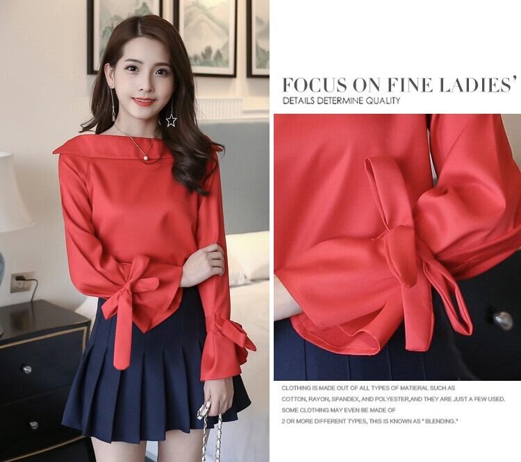 エレガント シフォン リボン付き 長袖 シャツ ブラウス A834